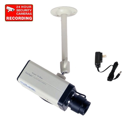 - Package included: 1 of box camera (body only), 1 of 3.5-8mm auto IRIS vari-focal lens, 1 of 12V DC regulated CCTV power supply, 1 x adjustable camera mounting bracket and 1 of security warning sticker