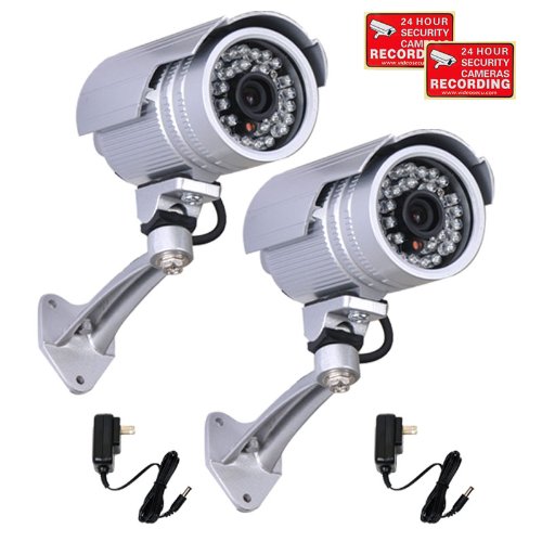 VideoSecu 2 Bullet Security Cameras Outdoor IR Day Night Vision Wide Angle Home Surveillance 30 Infrared LEDs with Power Supplies and Security Warning Stickers WI6