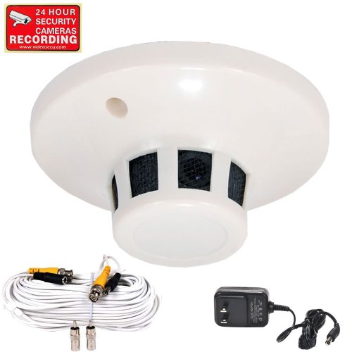 VideoSecu Hidden Color CCD Smoke Detector Style Covert CCTV Home Surveillance Camera with Power Supply and Extension Cable CHB
