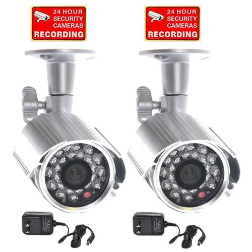 VideoSecu 2 Bullet Security Cameras Color CCD Day Night Vision Outdoor IR Infrared Wide Angle Weatherproof for CCTV Home Surveillance System with Power Supplies and bonus Security Warning Decals CED