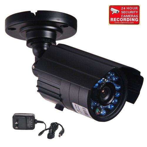 VideoSecu Outdoor Day Night Vision Built-in Sony CCD Infrared Home Audio Video Security Camera Weatherproof Built-in Microphone Wide Angle for CCTV DVR Surveillance System with Power Supply and Free Security Warning Decal WH2