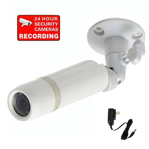 This inconspicuous camera can get crisp and clear pictures. It is better choice for surveillance systems if you don't want to be noticeable. Designed for easy installation, the bullet camera has a weatherproof housing, fits in most indoor and outdoor installations. It includes a mounting bracket. Plug and play ready. Note: This camera not made by SONY, it using SONY Super HAD CCD image sensor and SONY DSP technology, made by one of the world largest OEM manufacture. Free 12V DC 500 mA power supply and surveillance warning decal are included.