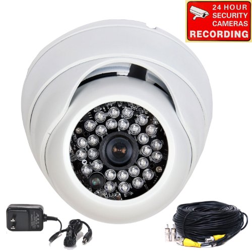VideoSecu 700TVL Outdoor Infrared Security Camera Night Vision Built-in 1/3" SONY Effio CCD 28 IR LEDs for Home Surveillance DVR CCTV System with Power Supply and Video Power Extension Cable A75