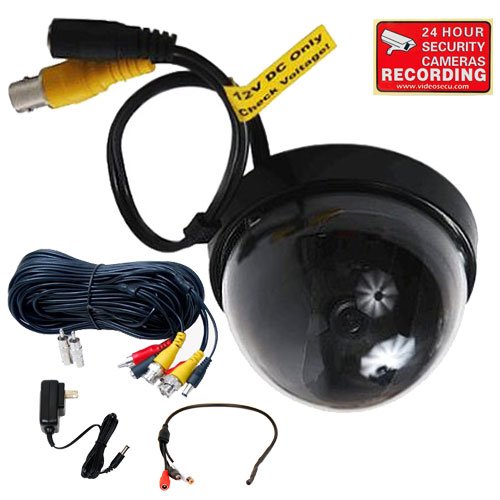 VideoSecu CCTV Dome Security Camera Built-in Sony CCD 420TVL 3.6mm Wide View Angle Lens for Home DVR Surveillance System with Preamp Audio Microphone, Power Supply and Extension Cable 1VM