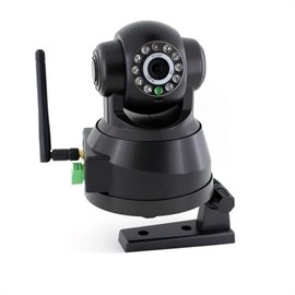 Free yourself from long video wires and enjoy the convenience of wireless technology with this pan/tilt IP camera. This camera can connect to your wireless router and record straight to your computer's hard drive. The advanced, built-in chip enables features such as recording triggered by motion detection, email alerts, and remote access from popular web browsers. The 1/4" CMOS image sensor provides resolution up to 640x480 (VGA) and good image quality. With 10 built in IR LEDs, this camera can capture video in night vision mode up to 30' away. All 270° of pan and 90° of tilt rotation can be remotely controlled through the network. IP configuration is easy with the included software.