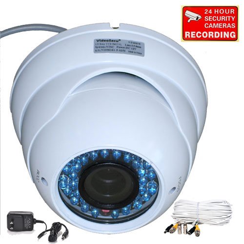 VideoSecu Day Night Outdoor Built-in 1/3'' SONY CCD Dome Surveillance Camera Home IR Zoom CCTV 3.5-8mm Varifocal Lens 36 Infrared Leds with Free Power Supply and Extension Cable A45