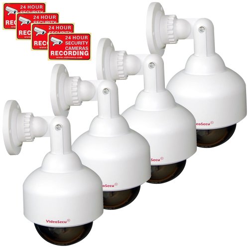 VideoSecu 4 x Dummy Fake Security Cameras Simulated Dome Cameras with a Blinking Red LED Light for Home Surveillance WL8